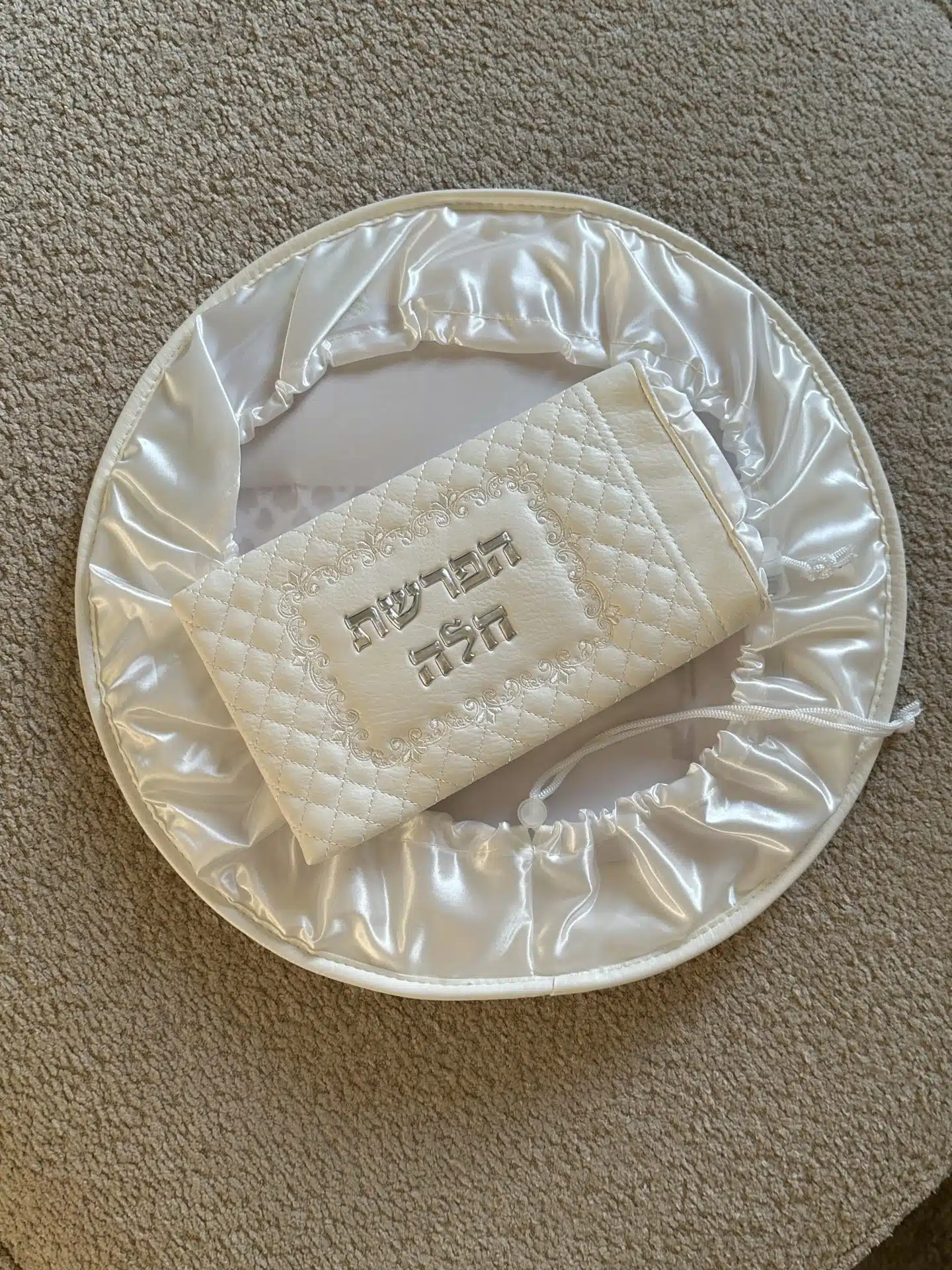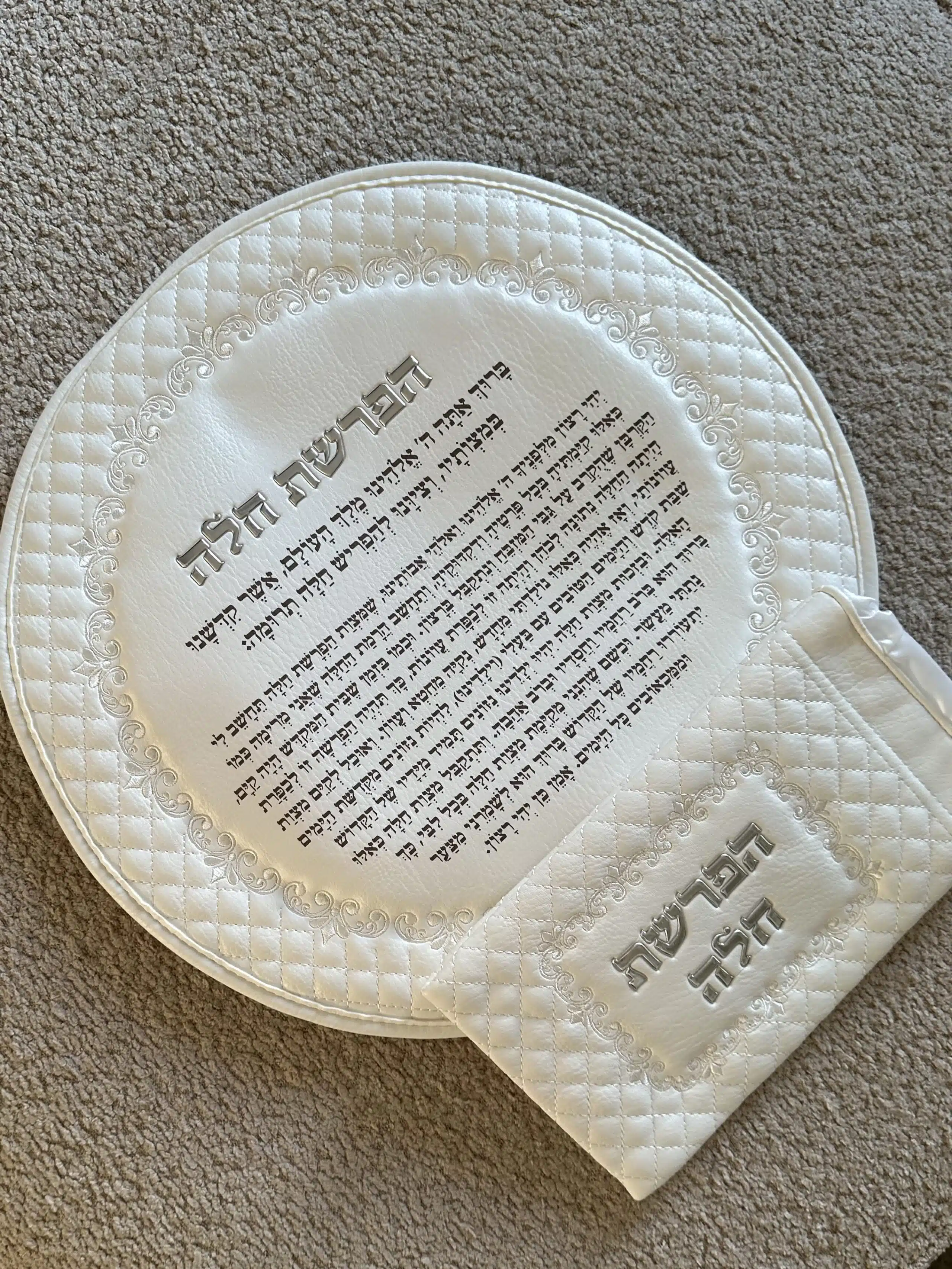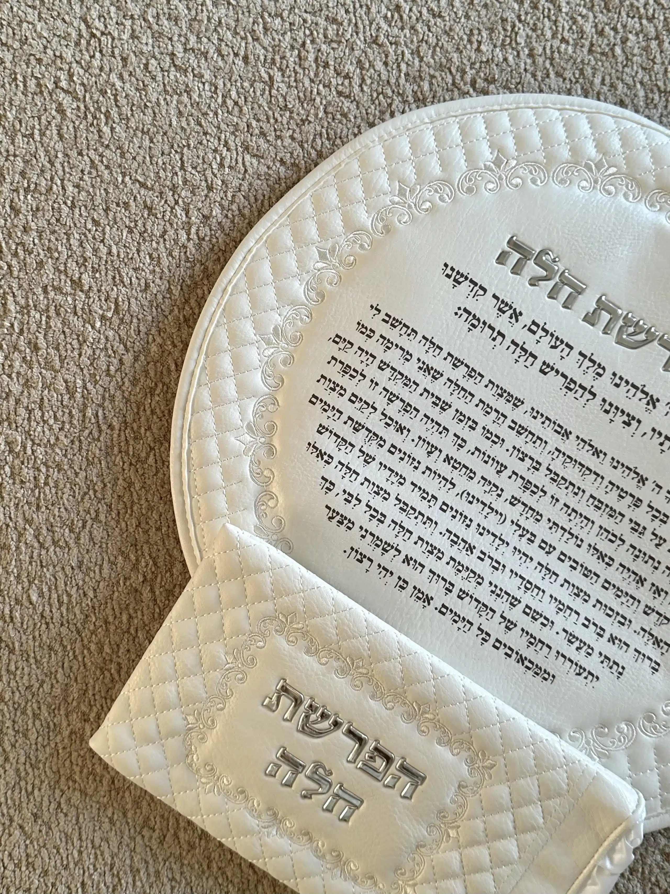 Deluxe challah separation set, embossed letters, white color, 40 cm.