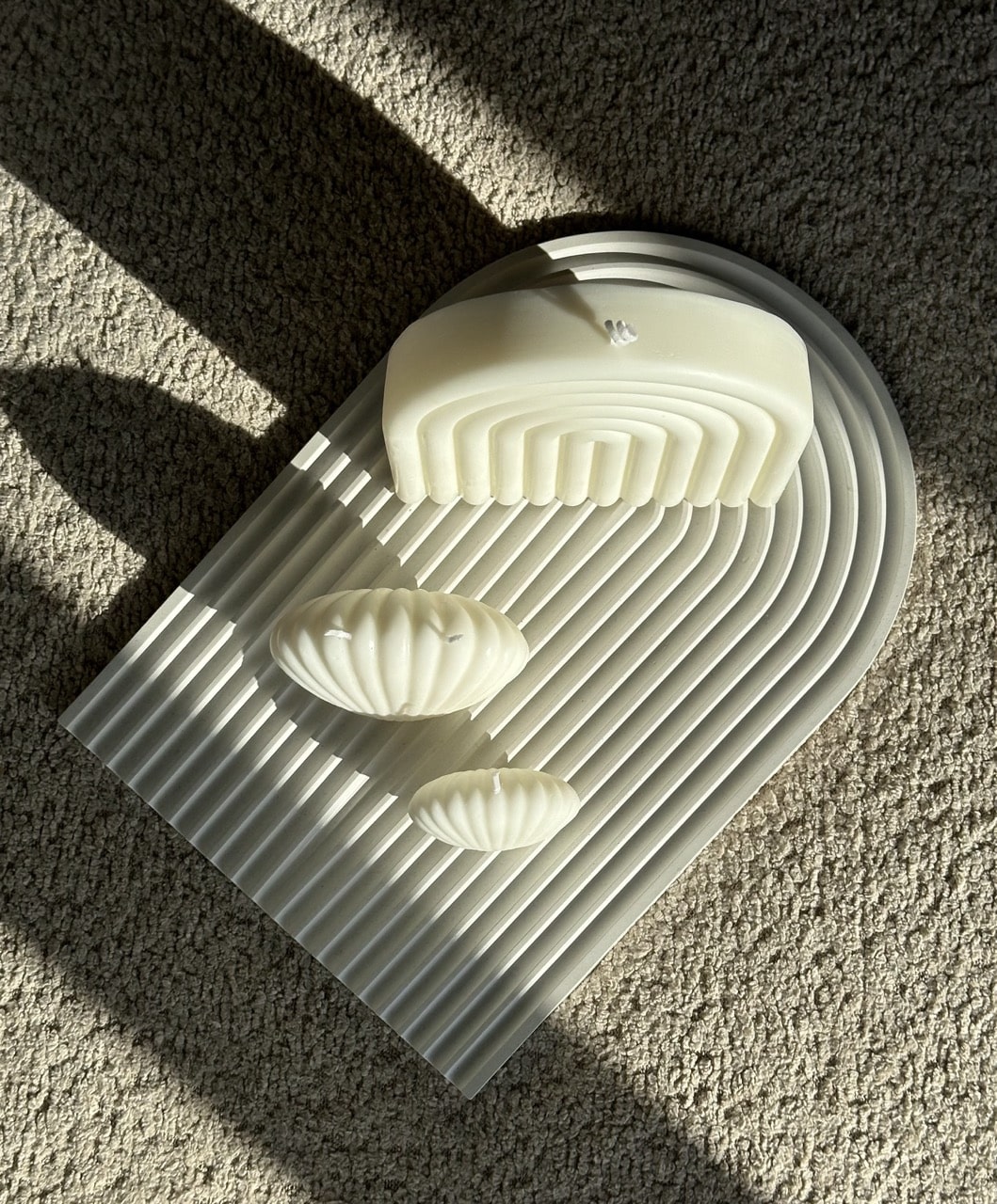 – Large arch tray in a creamy shade, length: 31 cm, width: 21 cm, depth: 1 cm.