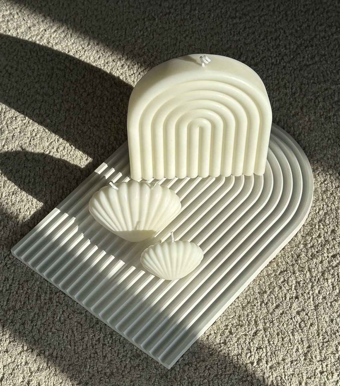 – Large white shell candle, height: 8 cm, width: 10.5 cm.