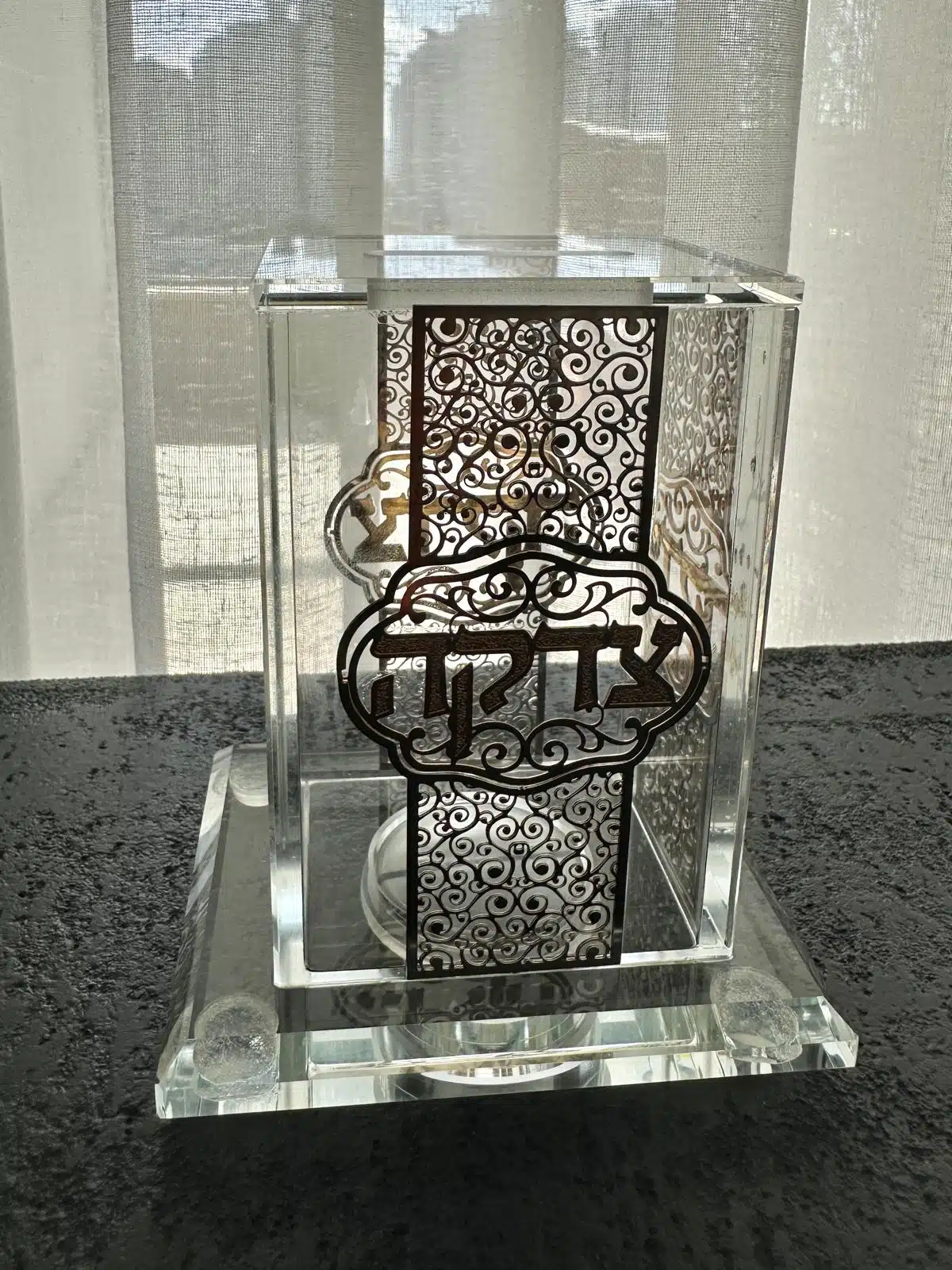 Home Page » מוצרים » קופת צדקה מקריסטל ” עיטורים “