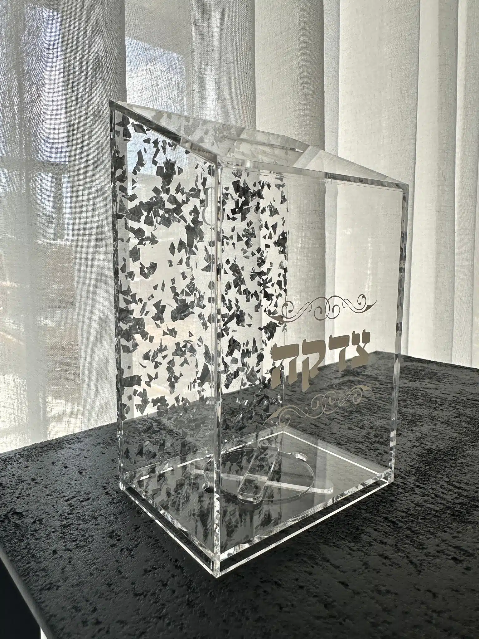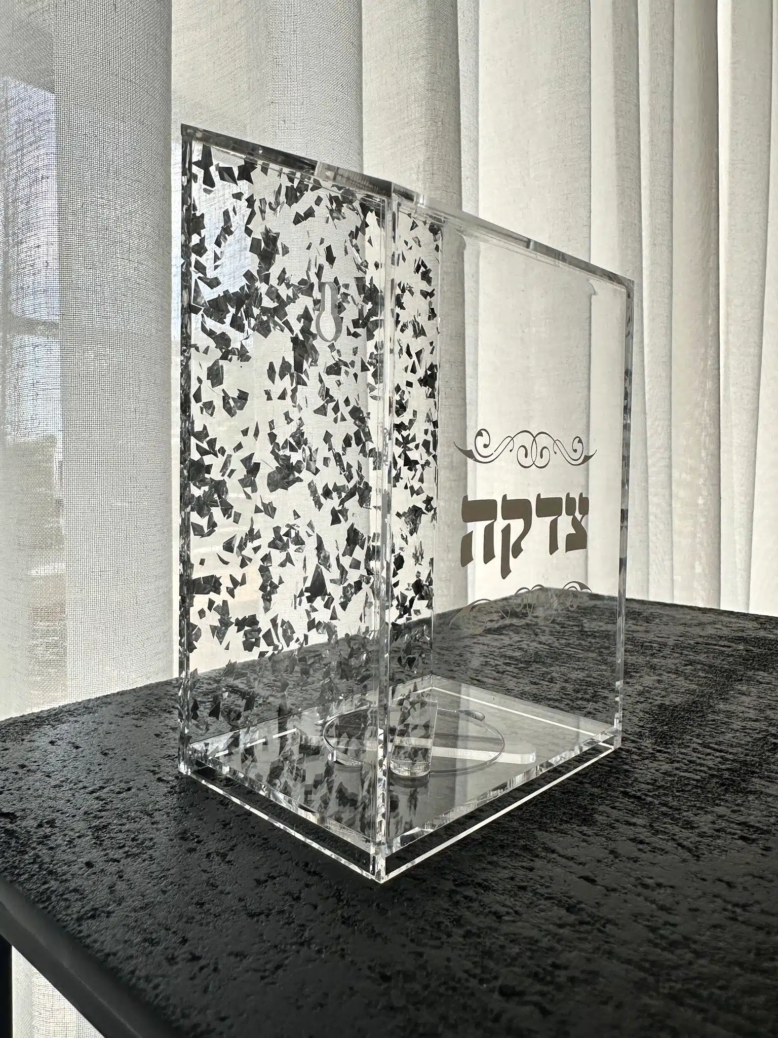 Home Page » מוצרים » Tzedakah Box – Glittered Perspex – Silver