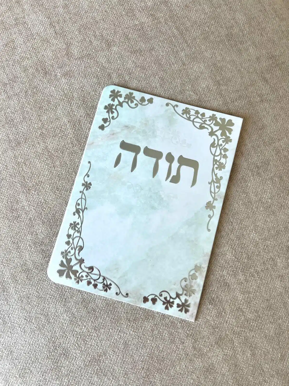 Blessing Booklet Gift Set, 16 cm x 11 cm, with two round candleholders (3.5 cm each) and a dried flower decoration.