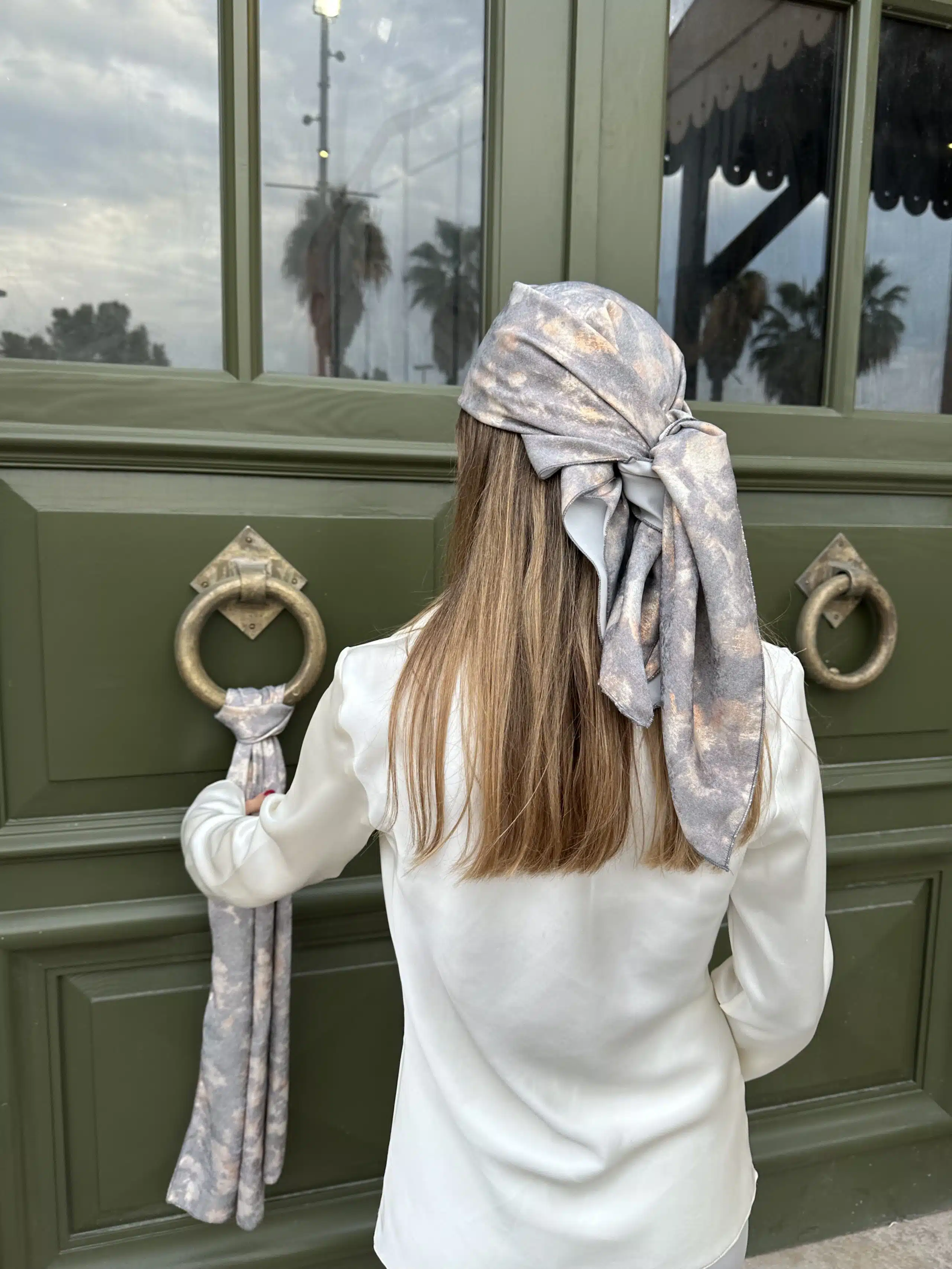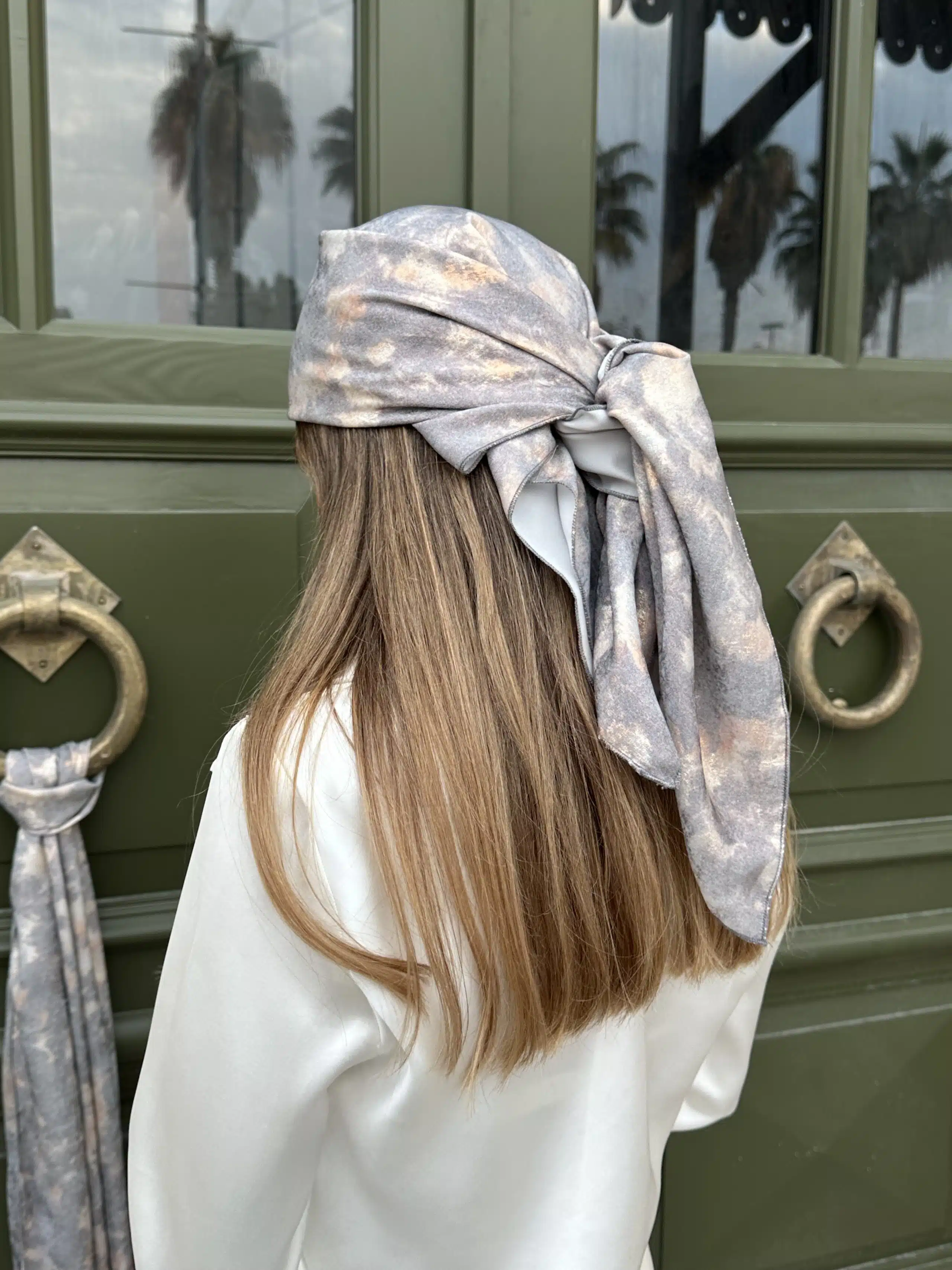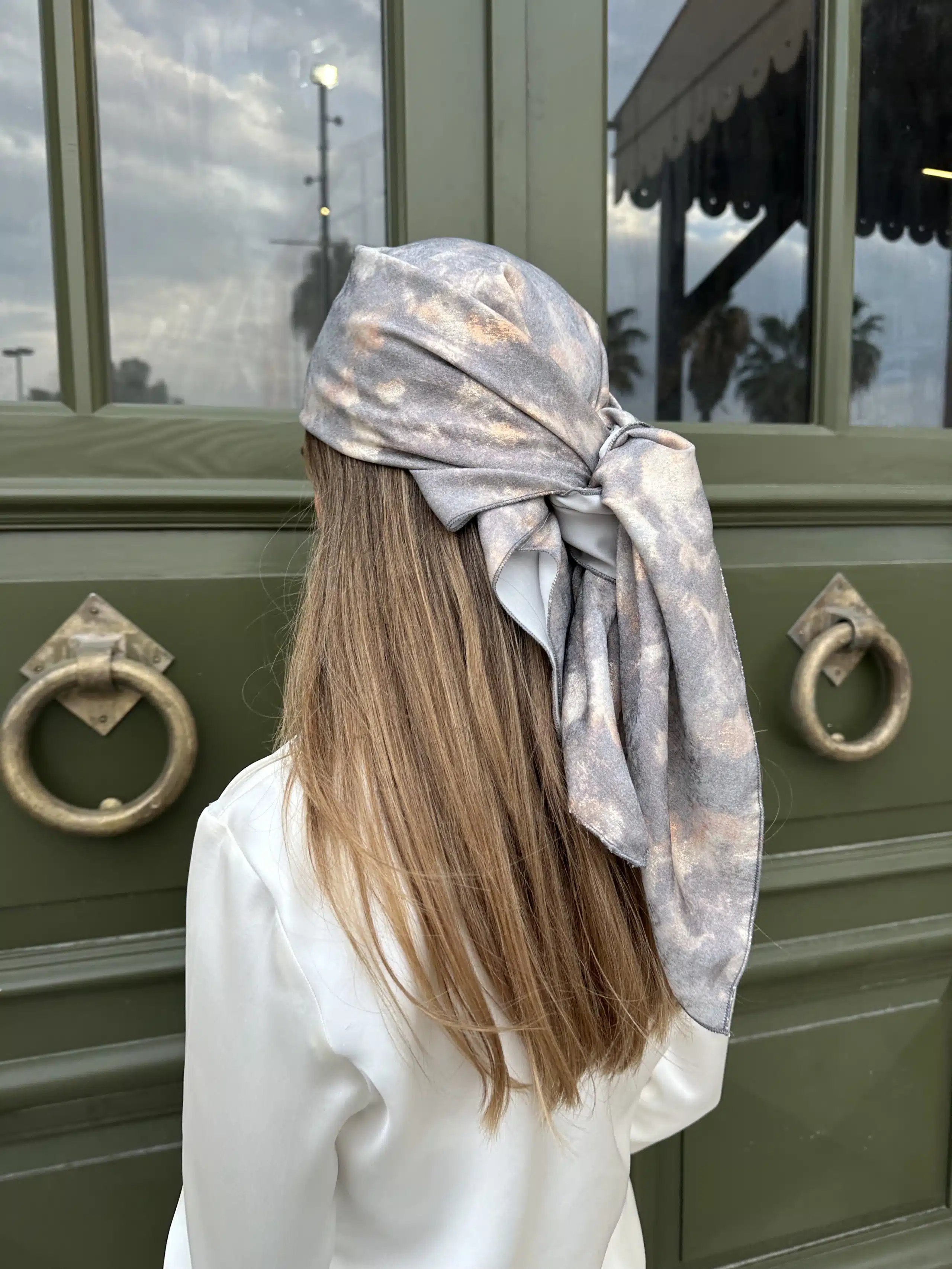 Headscarf, cloud pattern, satin fabric.