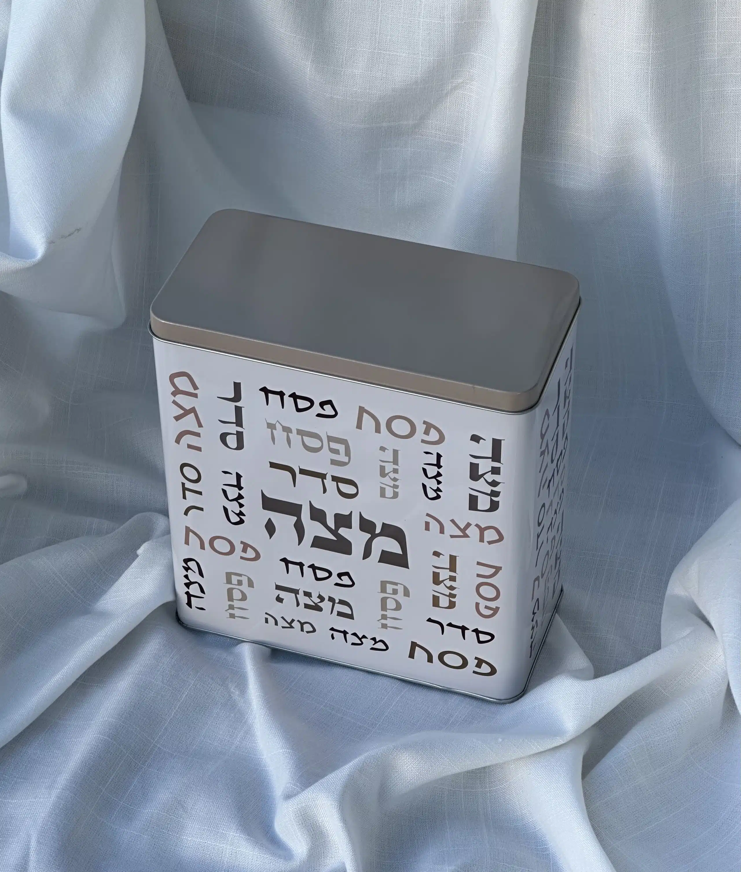 Decorative matzah holder made of tin, 20.5 cm high, 19 cm wide.