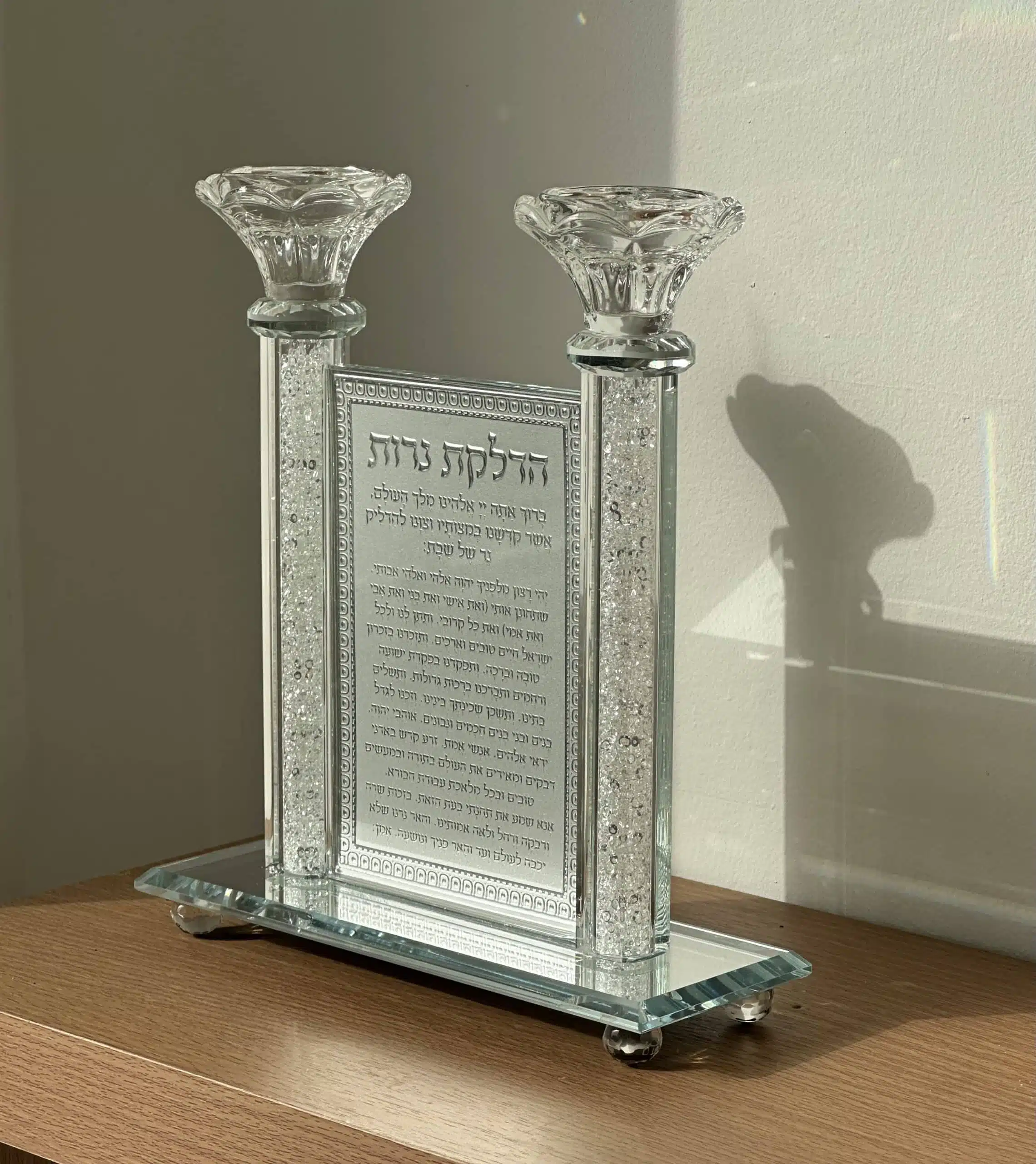 Elegant crystal candlesticks + candle lighting, transparent shade, height 21 cm.