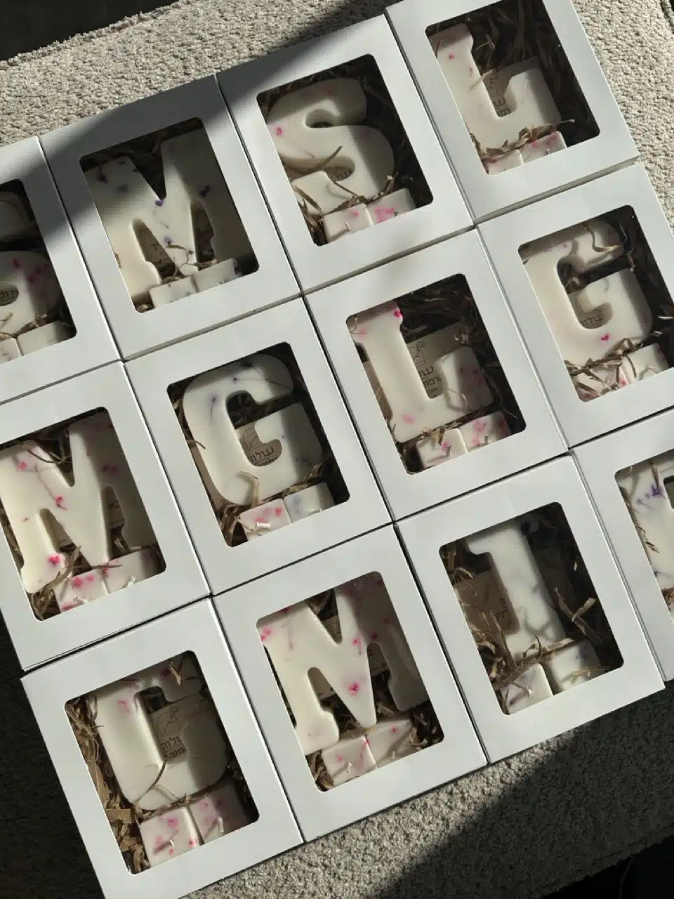 Our letter candles come in a luxurious personal gift box, making them a perfect, stylish gift. Each candle is crafted from natural soy wax, infused with an irresistible Luxury Hotel Essence, and adorned with a variety of delicate dried flowers in different colors—bringing a personal and meaningful touch to every individual.
