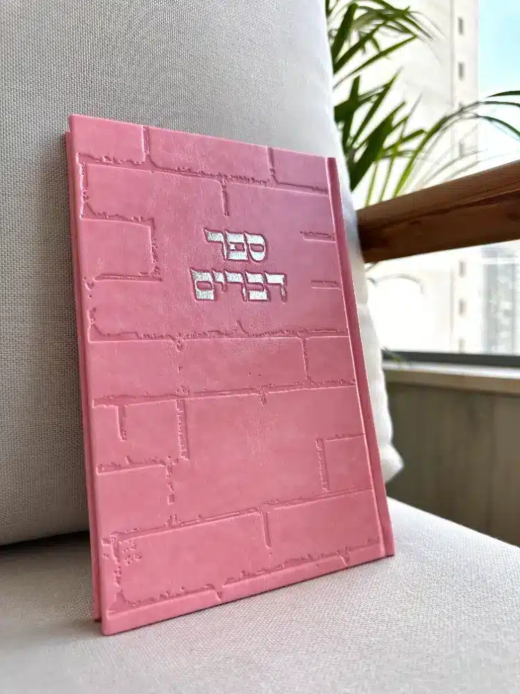 An Elegant Deuteronomy Book, Kotel model, pink in color with silver lettering, length 17 cm, width 12 cm.
