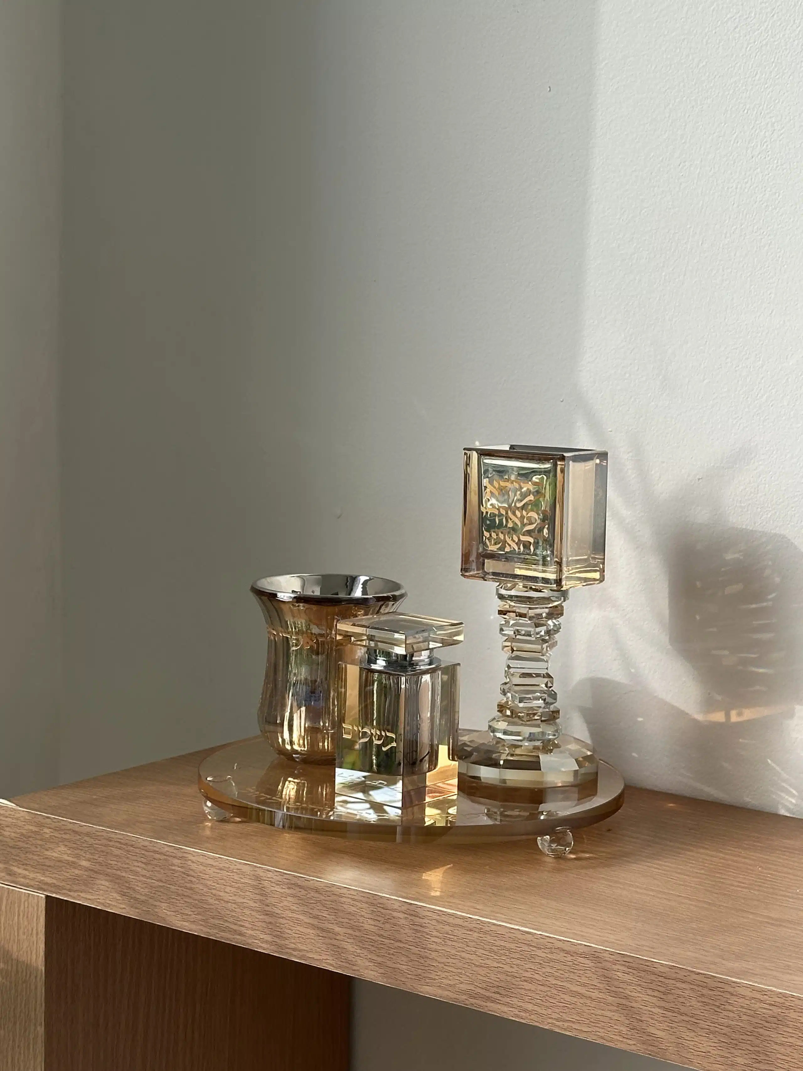 Elegant rose gold crystal Havdalah set, 20 cm.