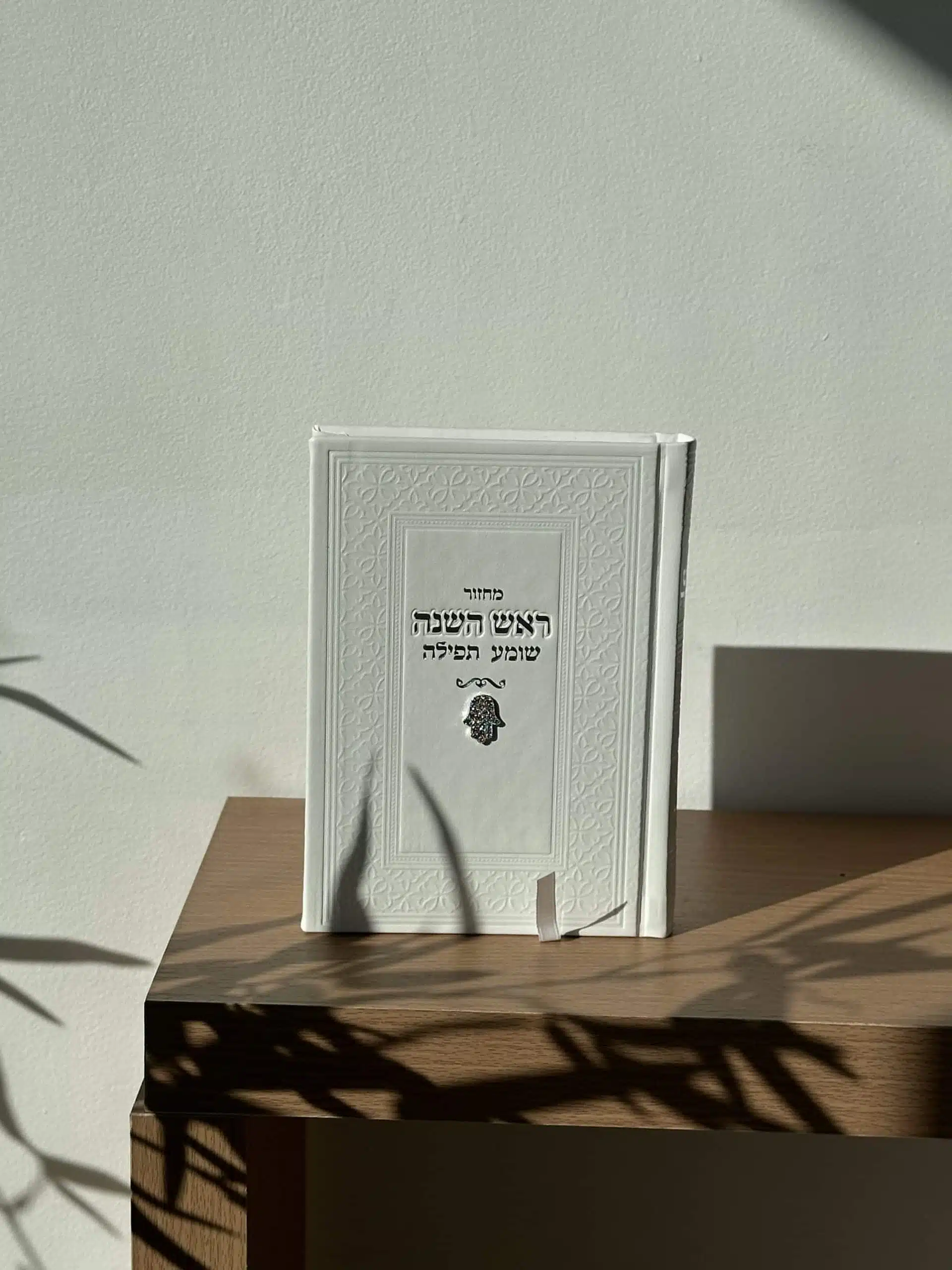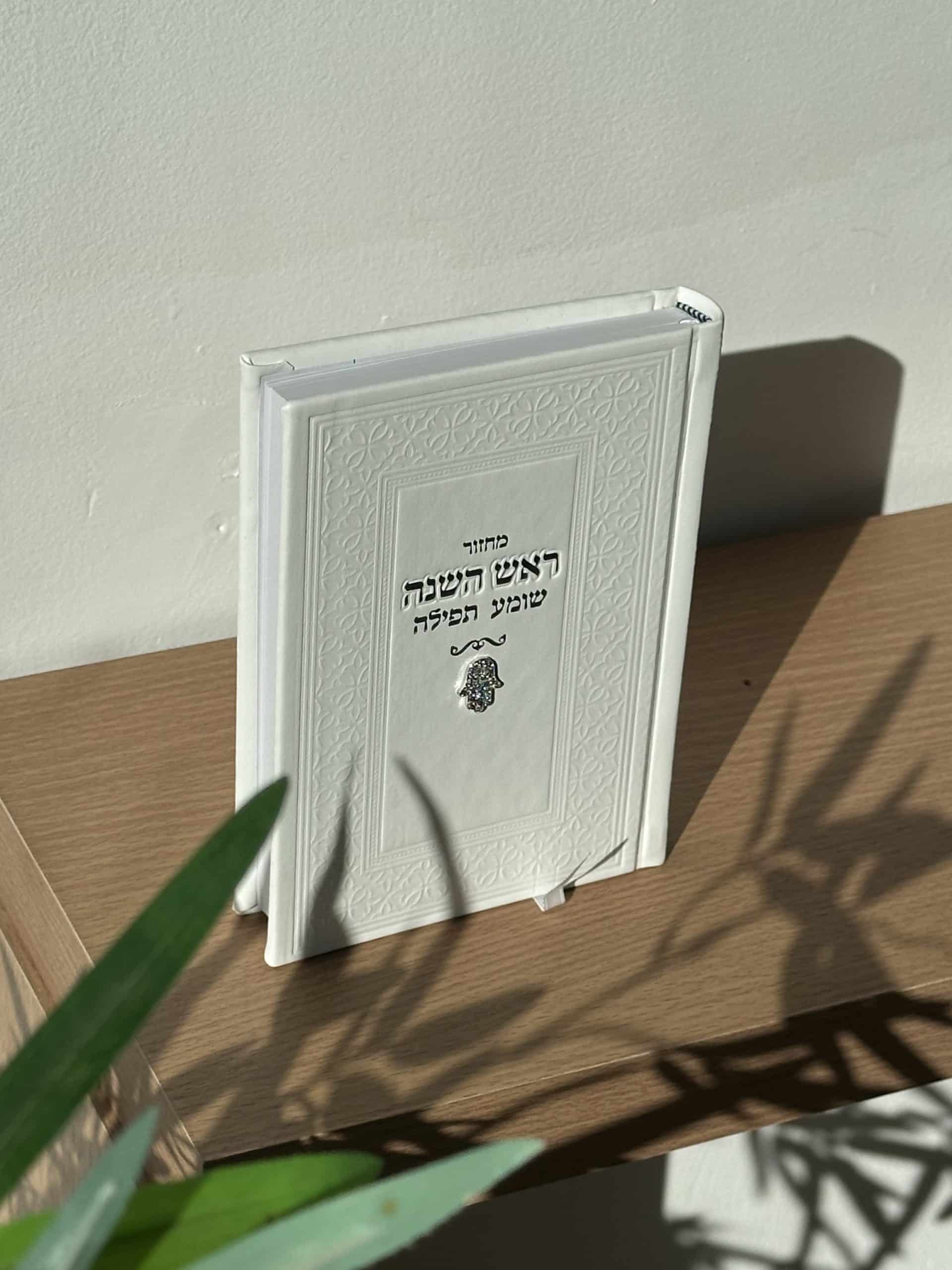 Rosh Hashanah Machzor, white color, Hamsa charms, height 17 cm, width 12 cm.