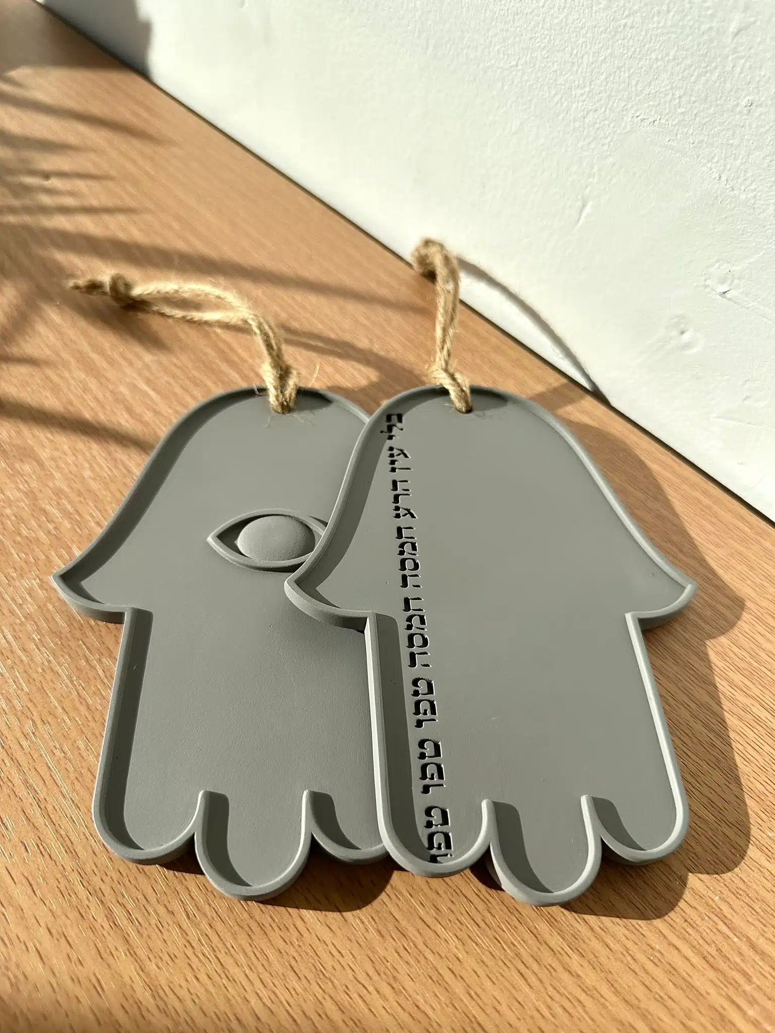 – Hamsa with Eye Design, Concrete, 15 cm x 11.5 cm