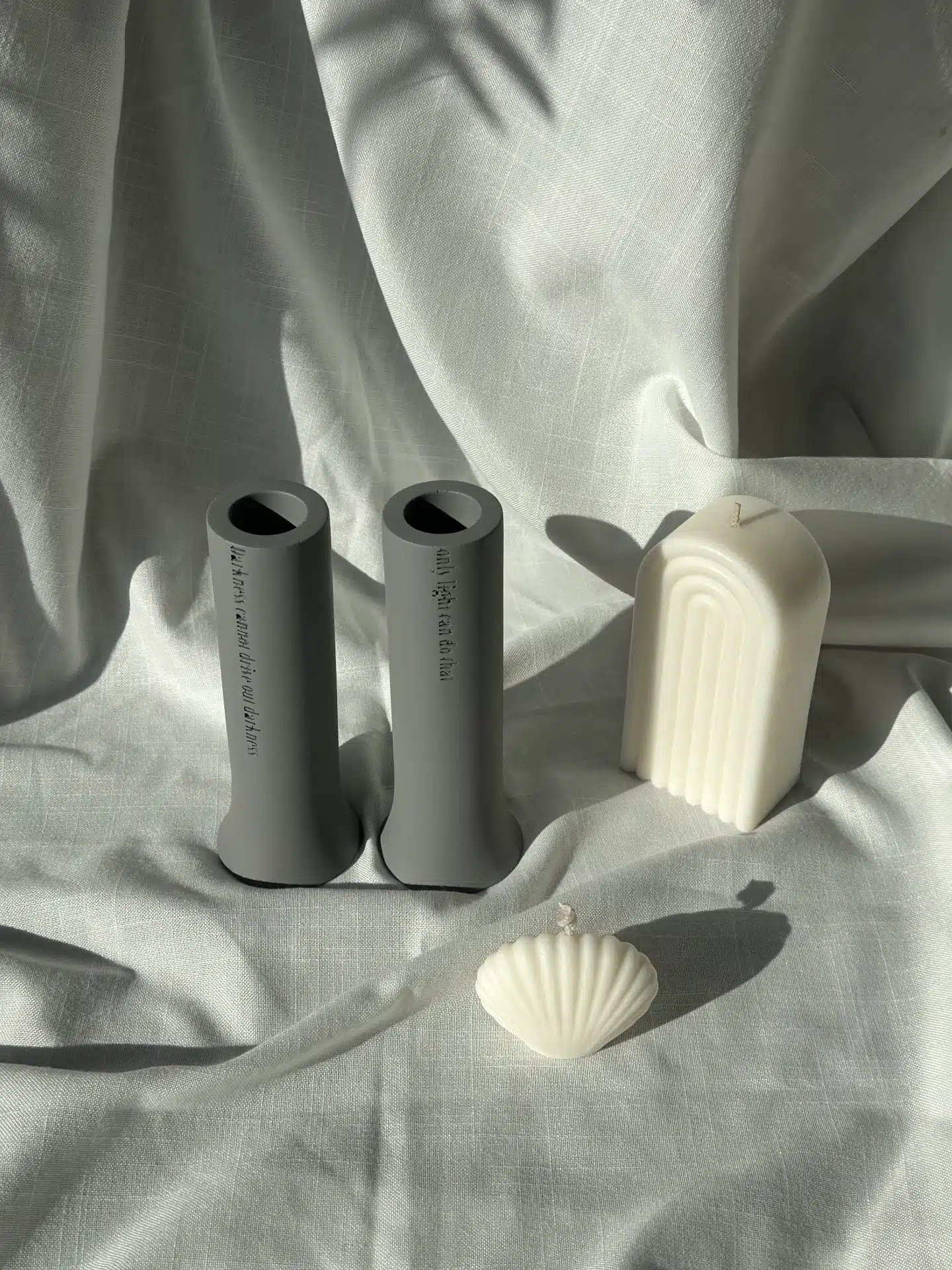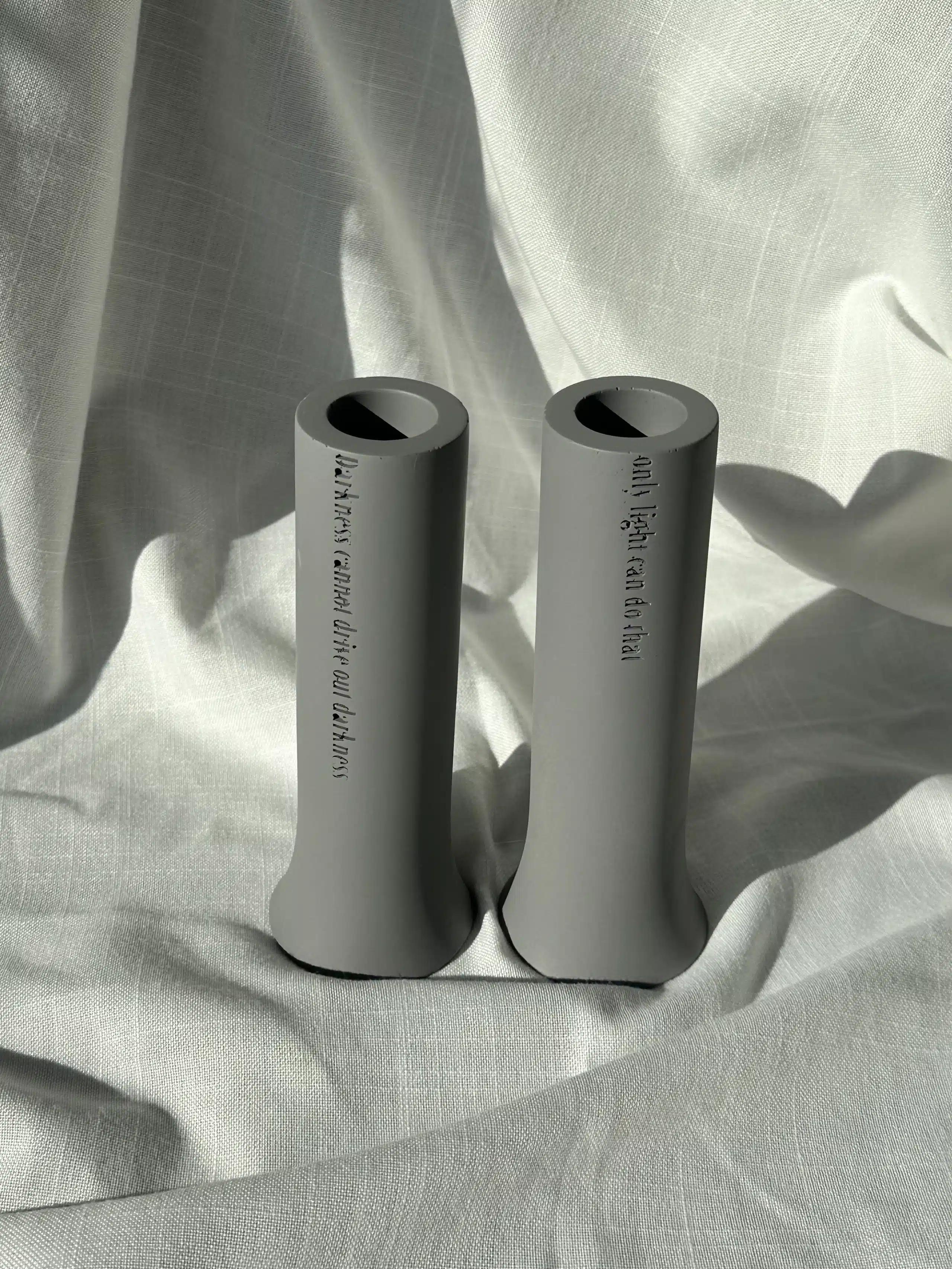 Home Page » מוצרים » Pair of Concrete Candlesticks with Text
