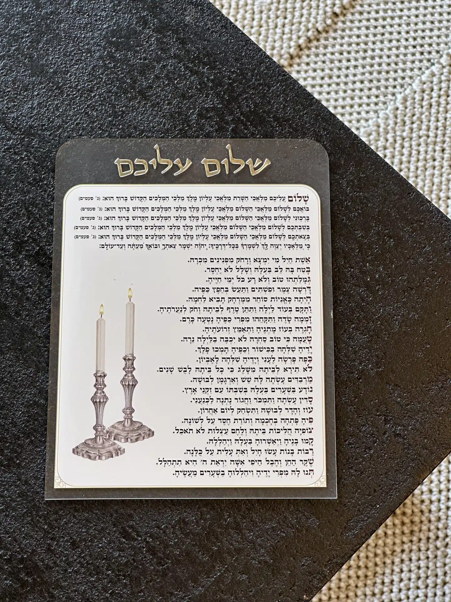 – “Shalom Aleichem” Booklet – “Kiddush for Friday Night” Booklet – “Saturday Blessings” Booklet – “Havdalah Ceremony” Booklet