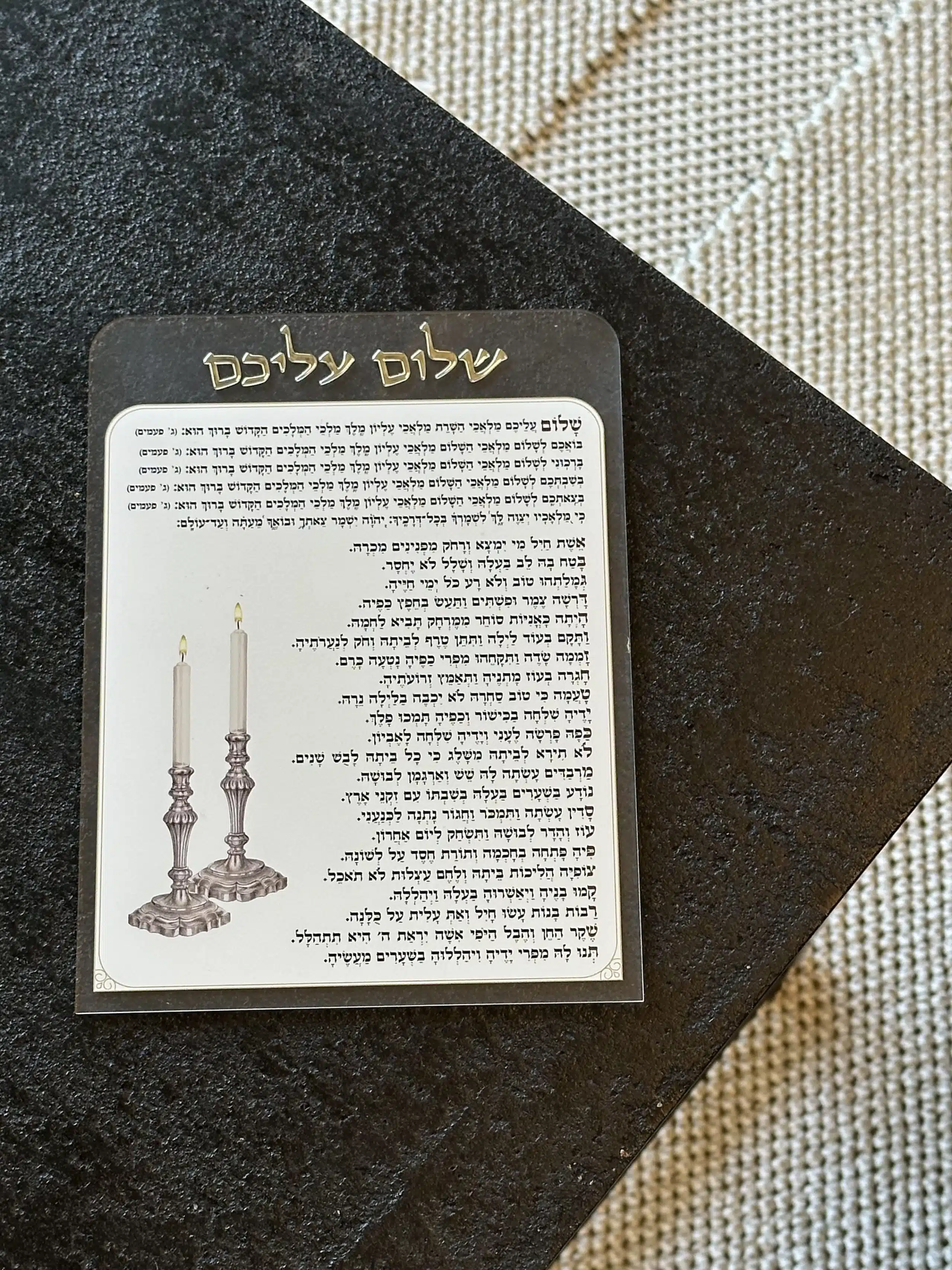 Shalom Aleichem made of acrylic, Sephardic version, length: 20 cm, width: 15 cm.