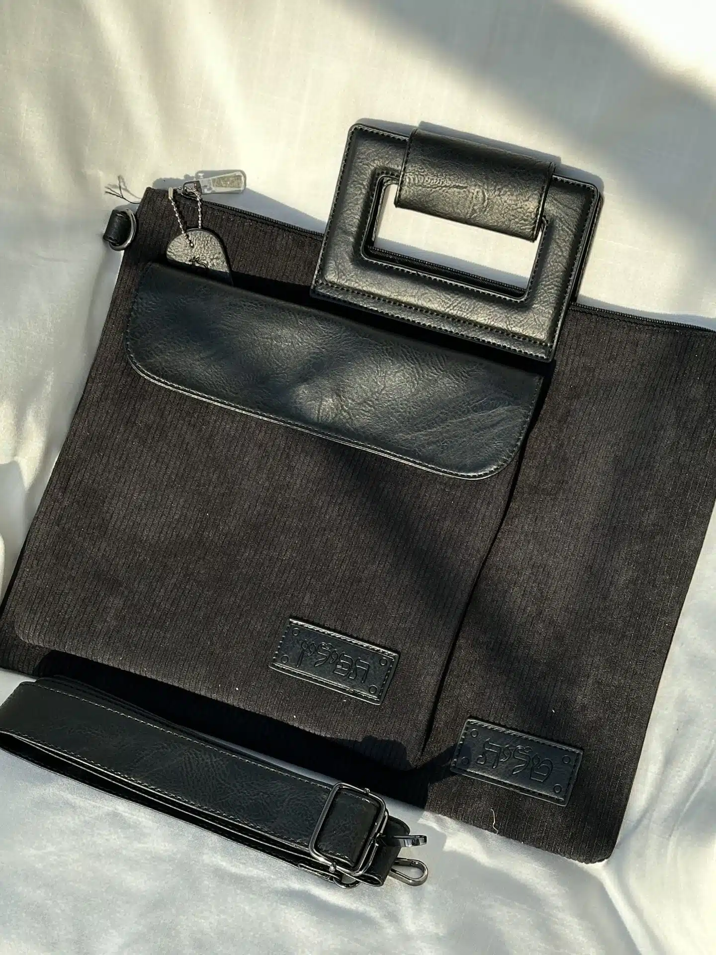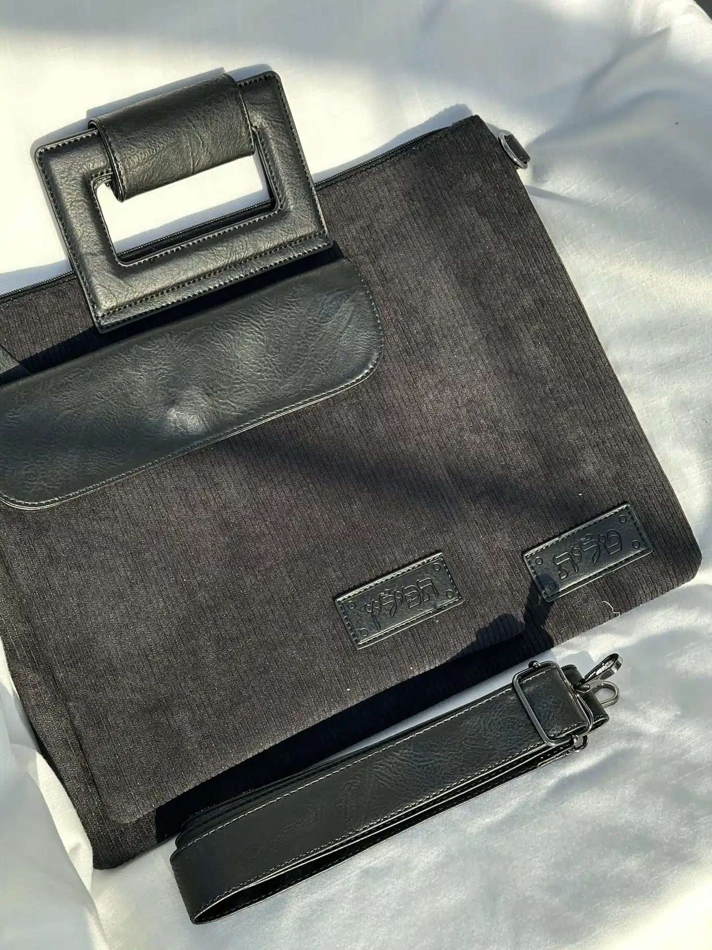 – Corduroy Tallit and Tefillin Set, Black Color, Length: 38 cm, Width: 31 cm.