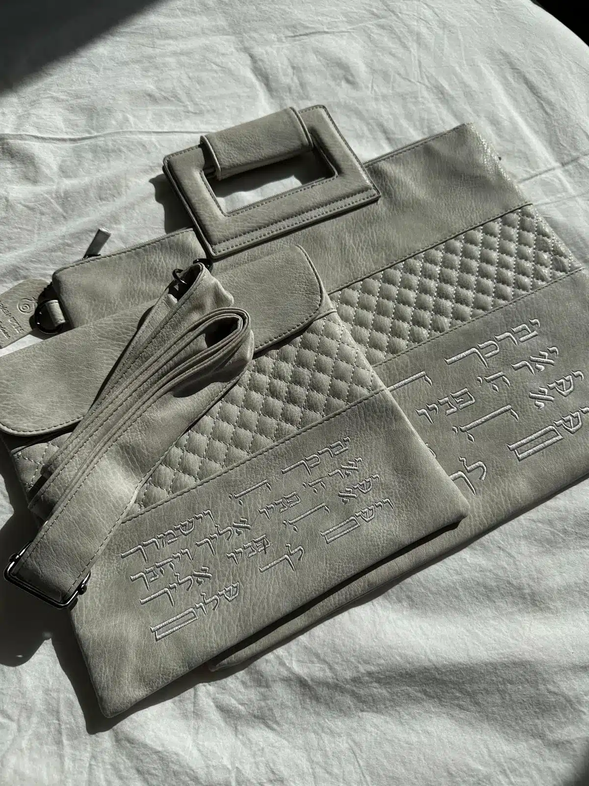 Deluxe tallit and tefillin set “May the Lord bless you and keep you”, embroidered, leather-like, gray color, length 38 cm, width 31 cm.