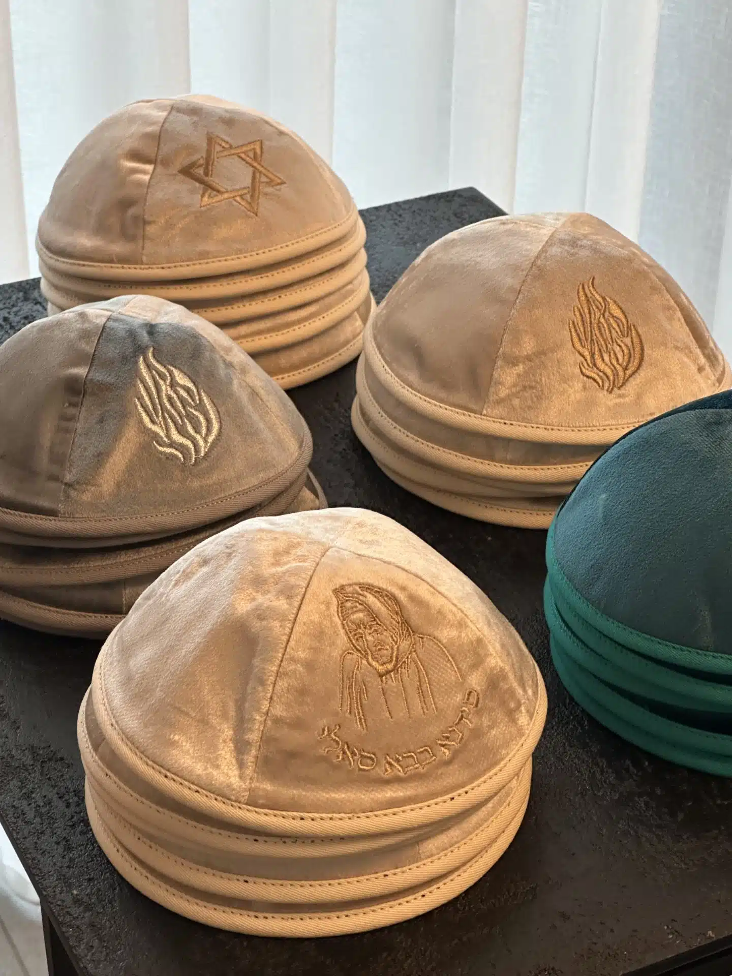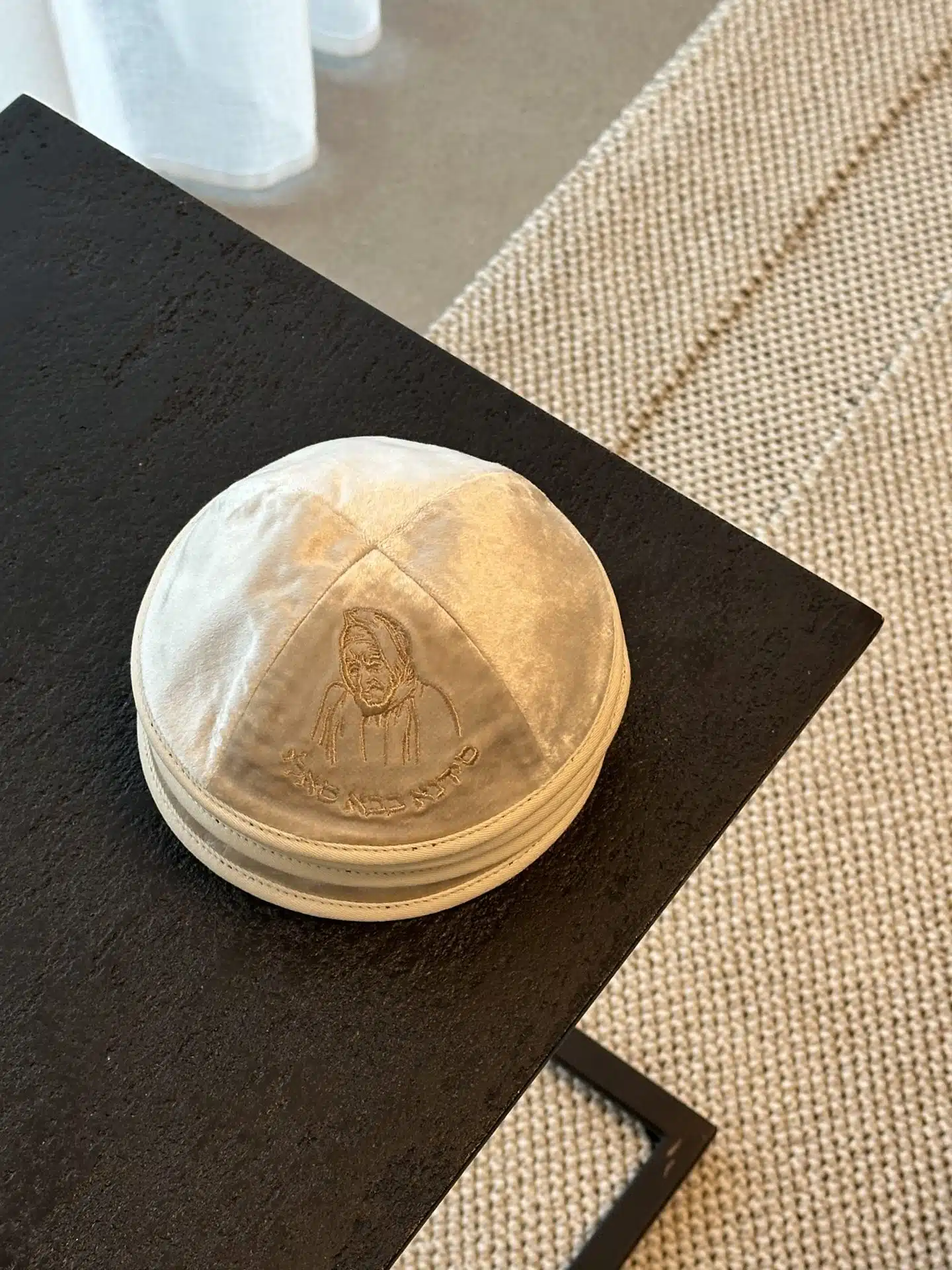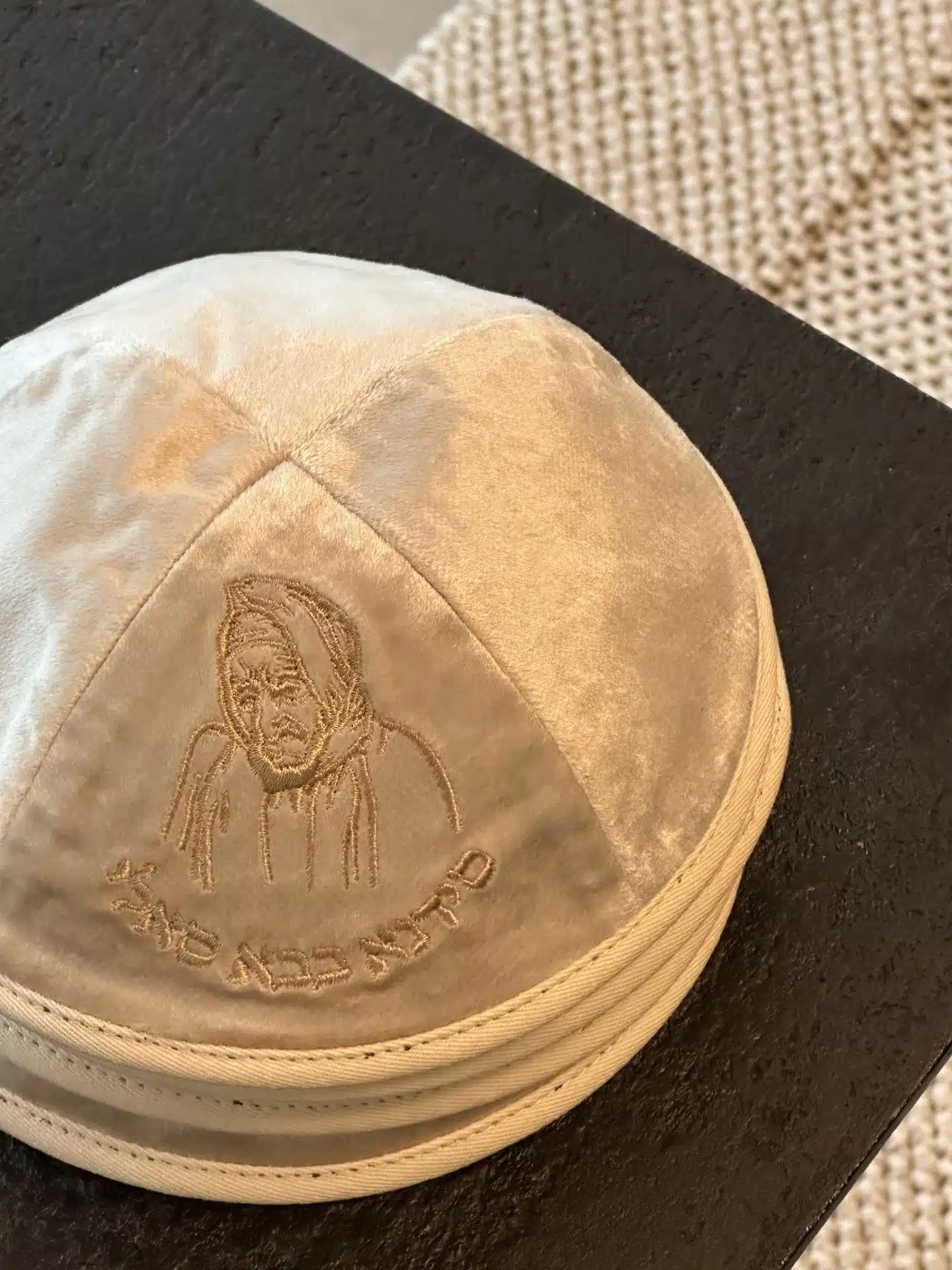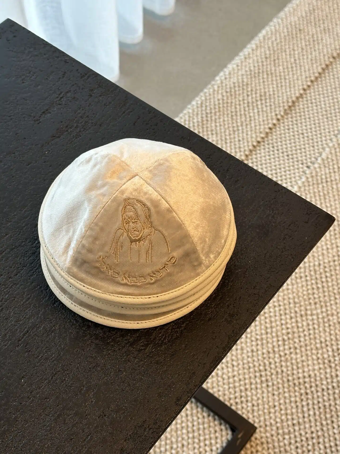 Velvet kippah “Baba Sali,” cream color, 20 cm.