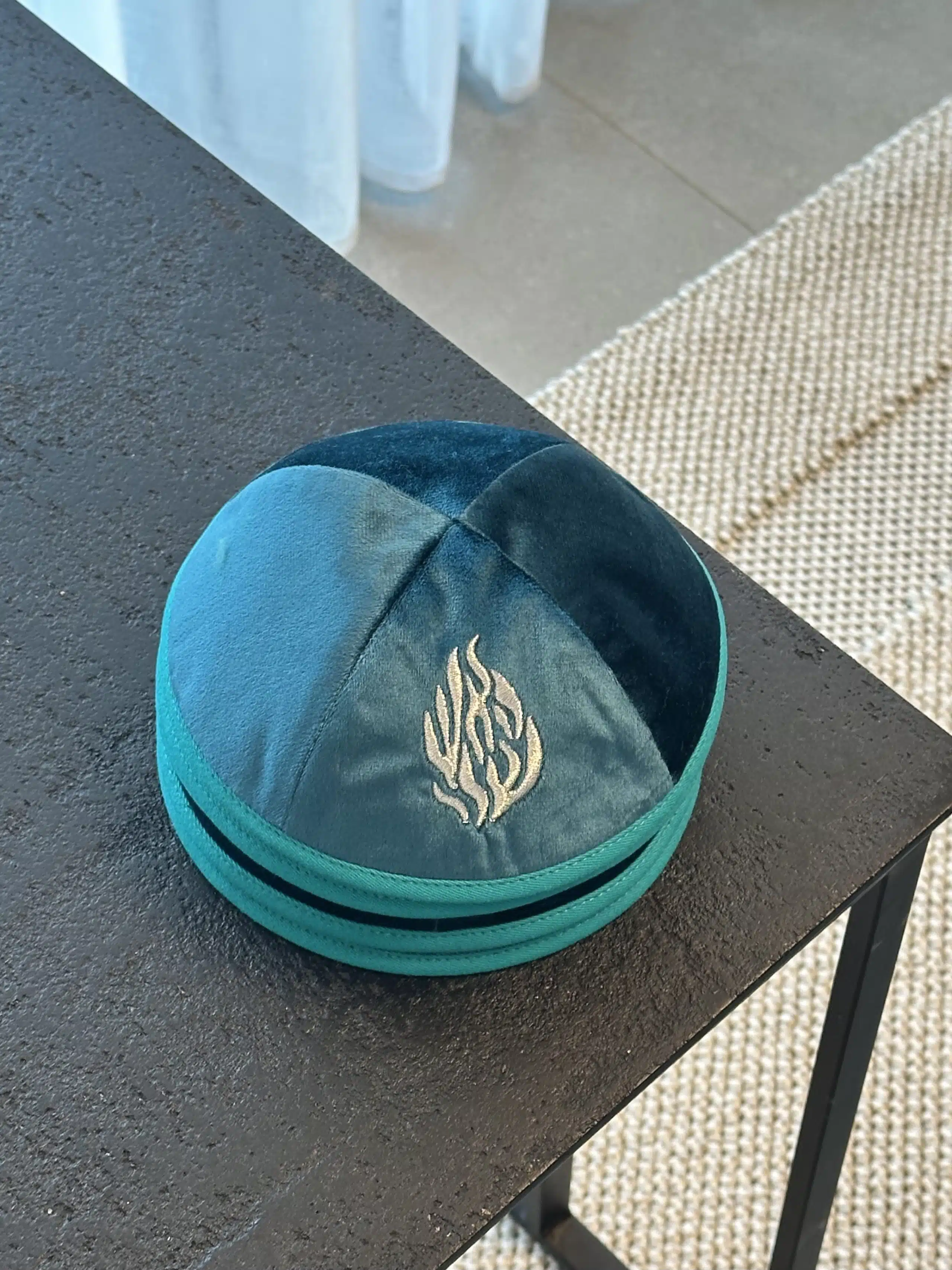 Home Page » מוצרים » Velvet Kippah “My Fire” – Turquoise